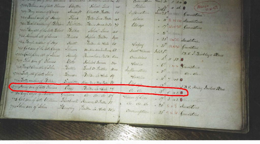 Henry Clegg was registered in this book at the time of his death.
