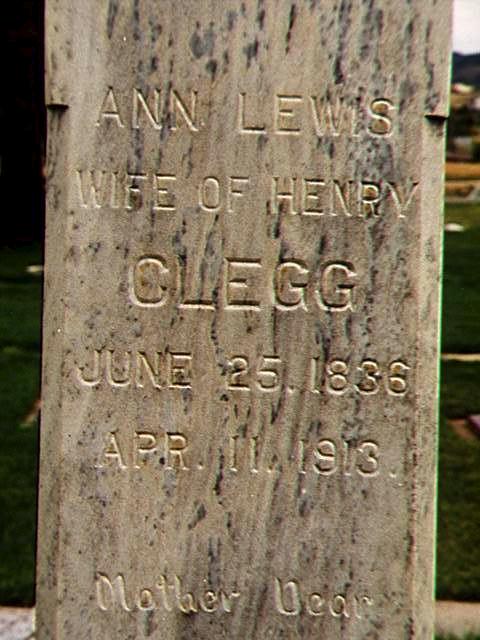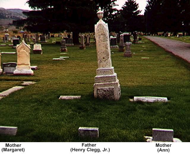 Henry Clegg, Jr. and his wives Ann Lewis and Margaret Ann Griffiths are buried next to each other in the Heber City, Utah cemetery.