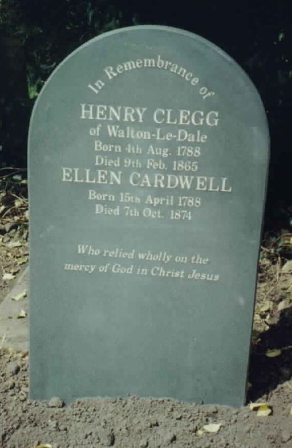 Tombstone of Henry Clegg Sr. and Ellen Cardwell
